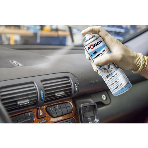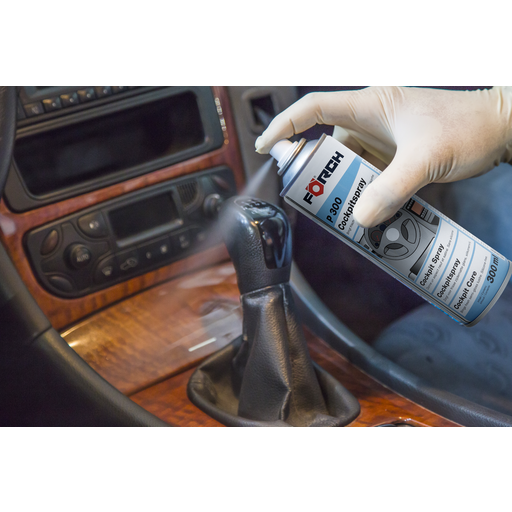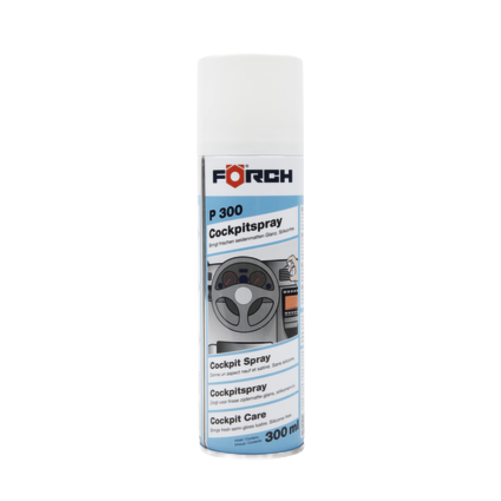 Das FÖRCH Cockpitspray P300 ist ein hochwertiges Pflegespray auf Kohlenwasserstoffbasis, speziell entwickelt für Kunststoff-, Gummi-, Holz- und Lederteile im Fahrzeuginnenraum. Es frischt die Farben auf, verleiht den behandelten Oberflächen ein neuwertiges Aussehen und hinterlässt einen seidenmatten Glanz.