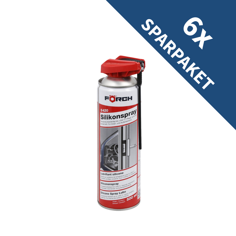 6x FÖRCH Silikonspray S420 – Hochleistungs-Gleitmittel & Kunststoffpflege | bis 250 °C, wasserabweisend, für Auto, Haushalt & Industrie