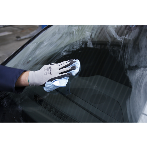 Glas Polish Cleaner dünn und gleichmäßig mit einem Mikrofasertuch auf die zu reinigende Glasfläche auftragen