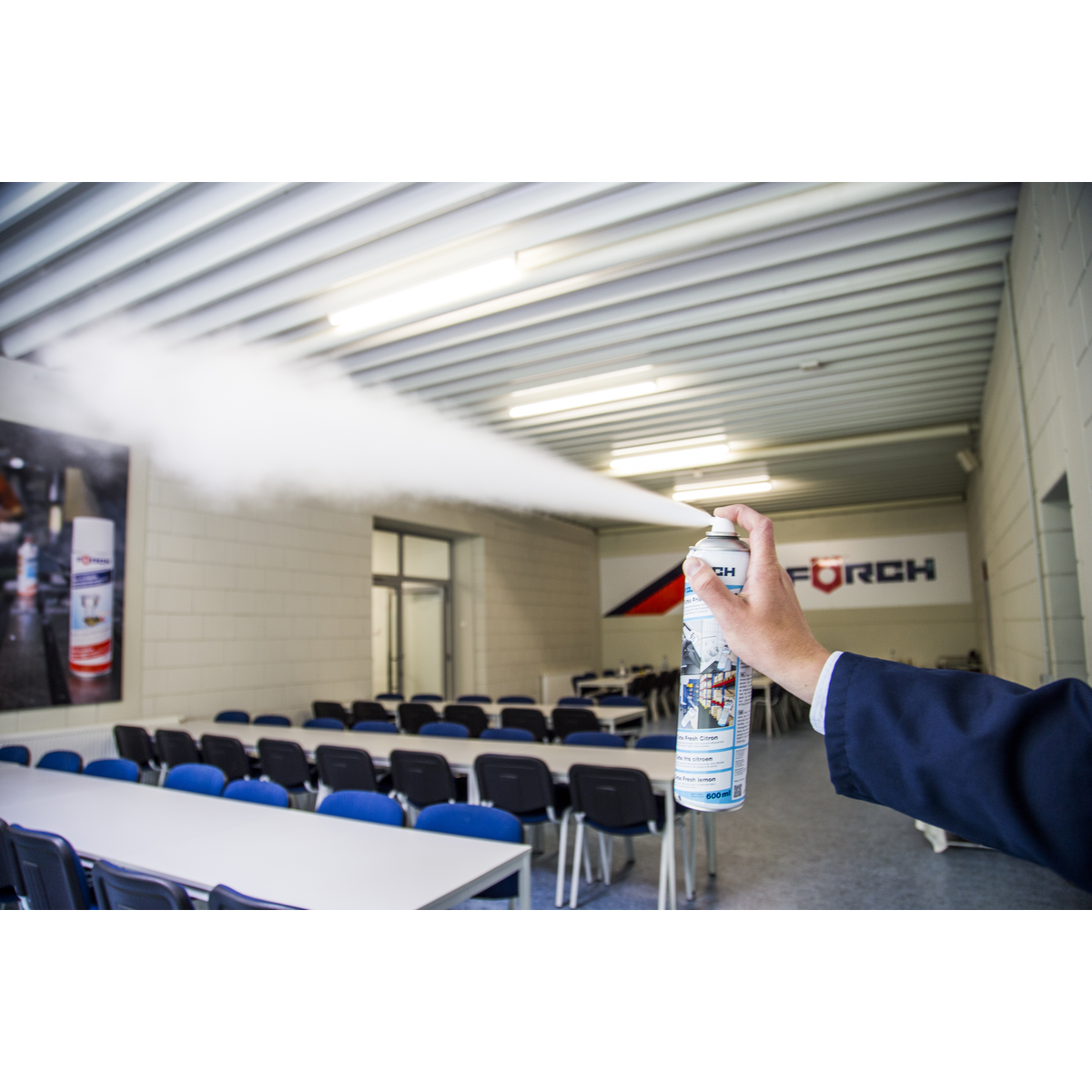 Limousine: Durch geöffnete Fahrertür ca. 3 Sek. sprühen → Türen schließen → 5–10 Min. einwirken lassen → anschließend gut lüften.