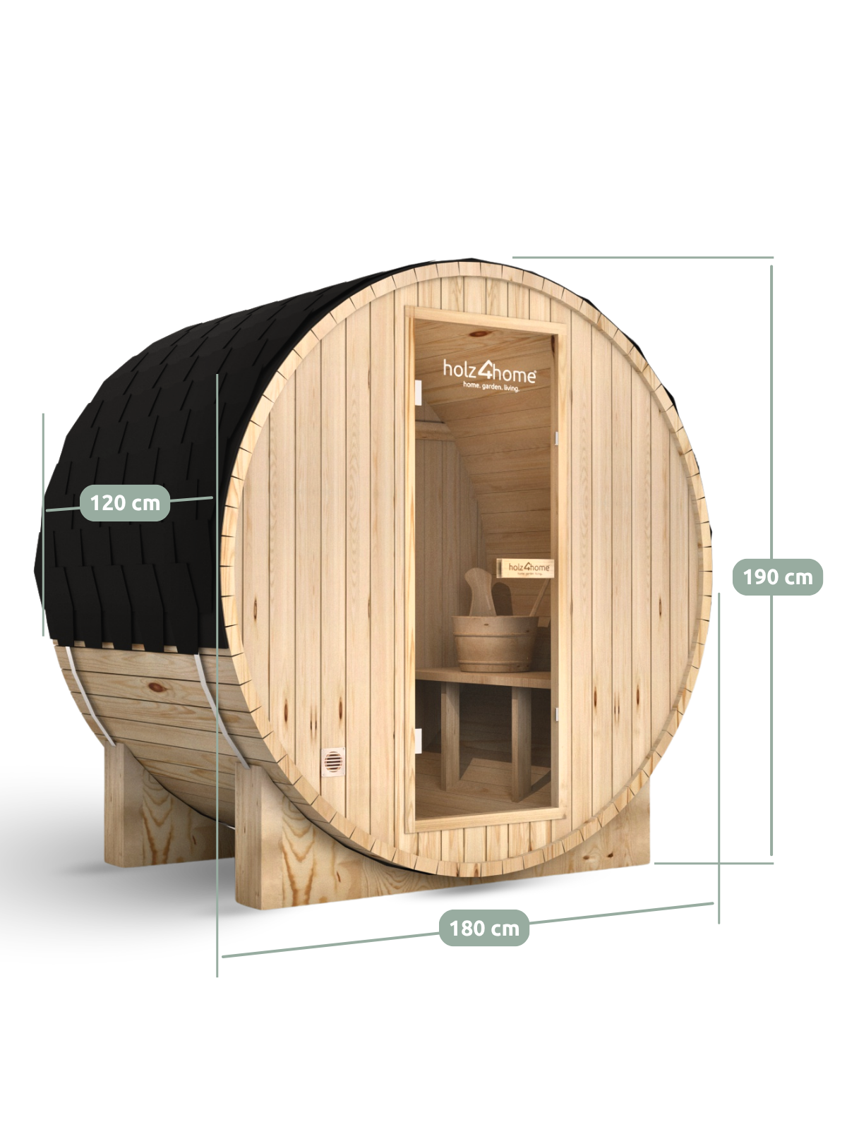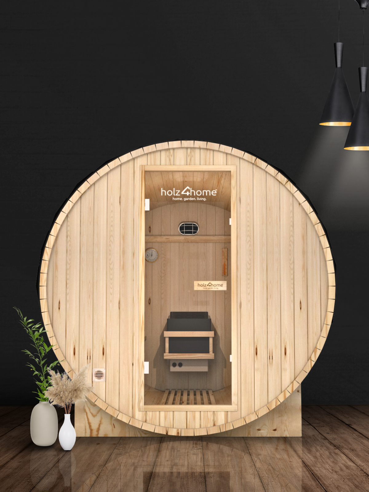 ✔ Exklusives Design – die runde Fassform sorgt für eine optimale Wärmeverteilung und ein besonderes Saunaerlebnis