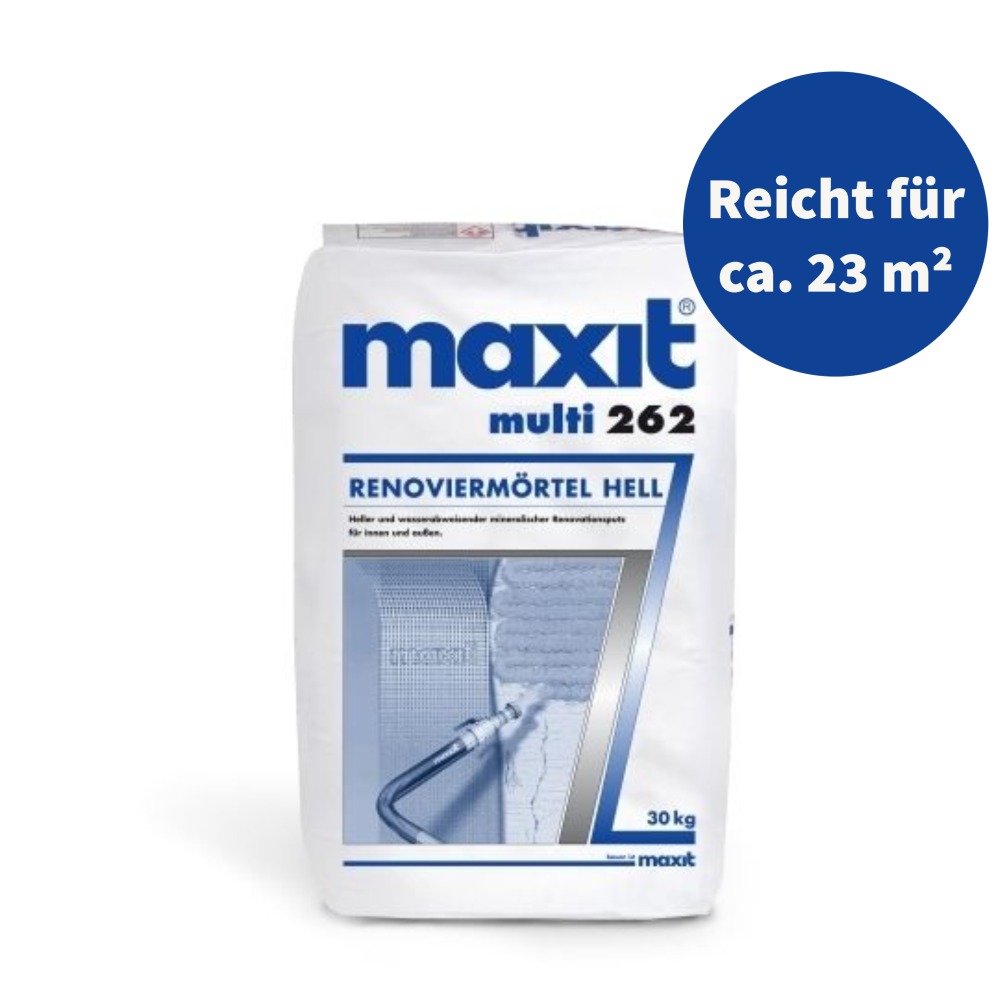 maxit multi 262 Renovierputz, hell, hochvergütet als Dünnschichtputz oder Haftbrücke auf Beton für den Innen- und Außenbereich